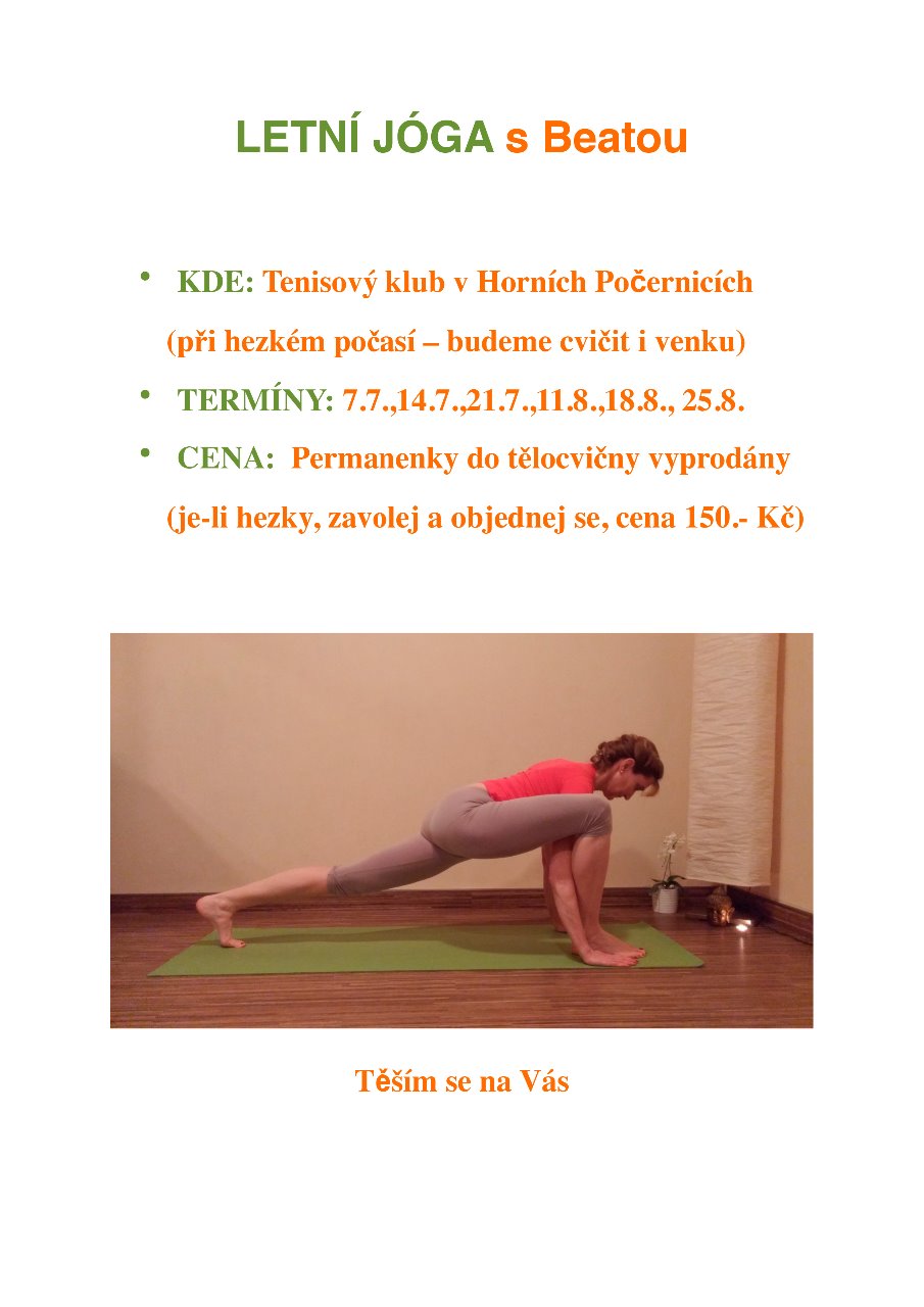 O prázdninách cvičíme každý čtvrtek od 19. hod.,